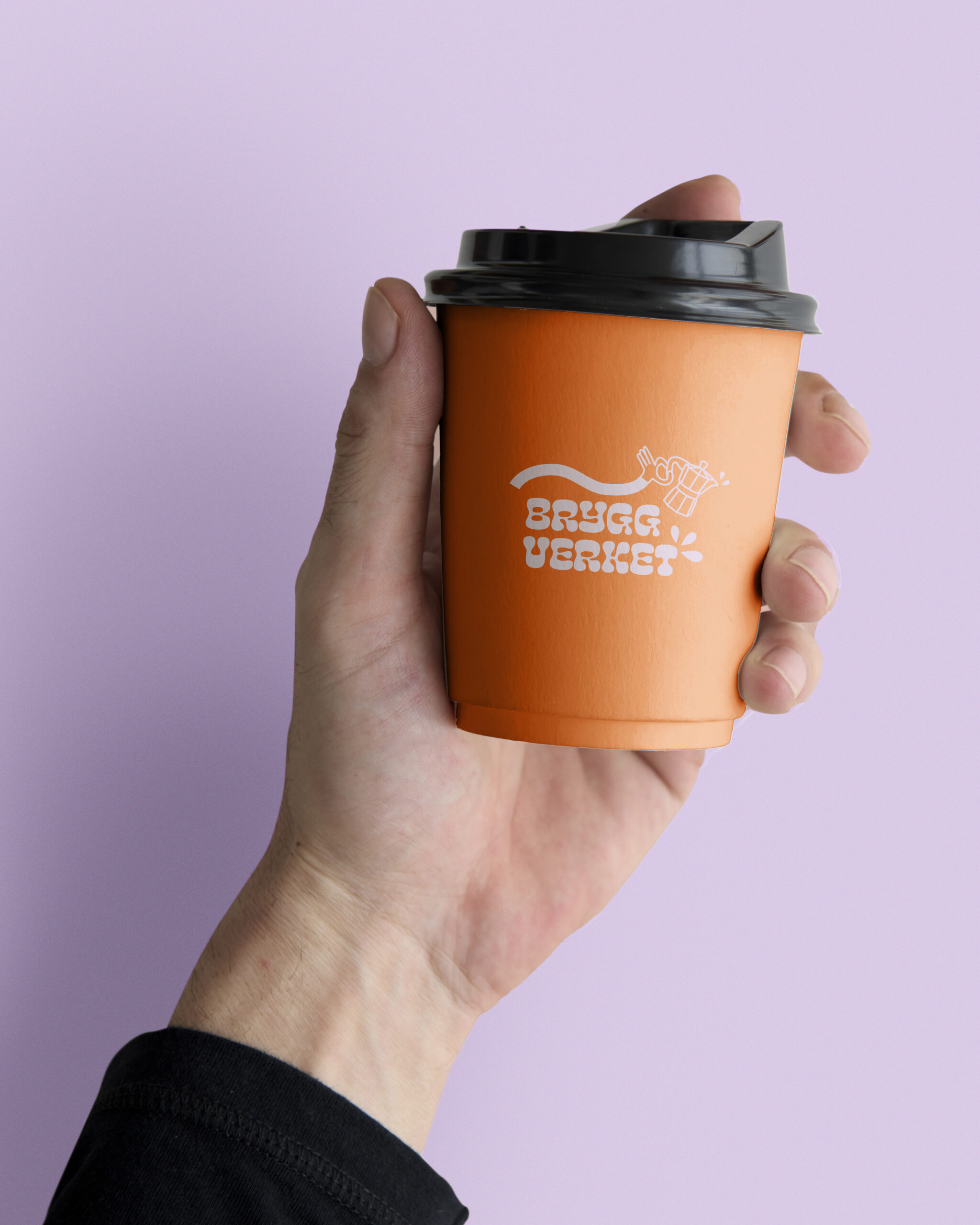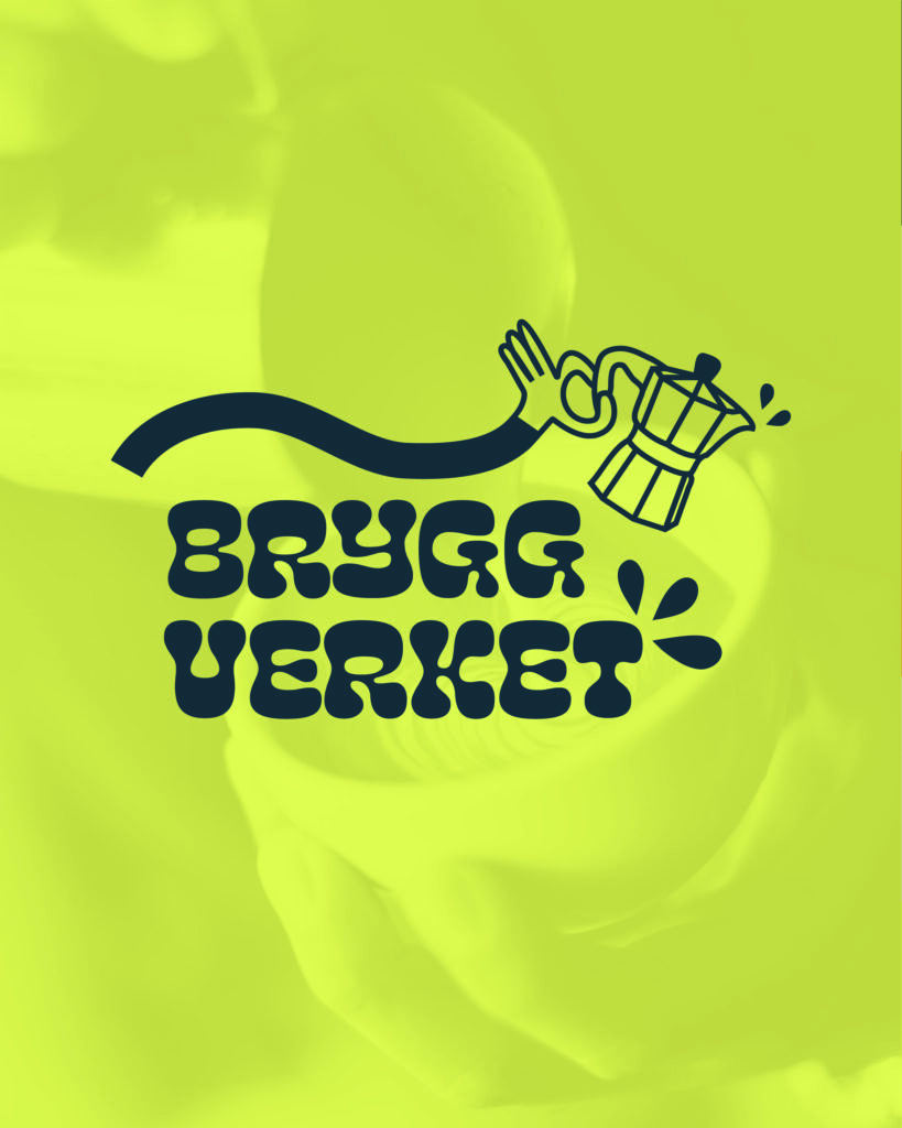 Lösning Efter att ha researchat cafékonkurrenter kom jag fram till att många av dem använde mörkbrunt, beiget och grönt. Därför ville jag att Bryggverkets färger skulle kännas pigga, och dessutom sticka ut när man ser en kund gå med en kaffekopp på stan. Till detta valde jag att inspireras av Mikkellers illustrationer när jag designade mokakokaren i logotypen, eftersom att jag tycker att deras varumärke står för passion för hantverksmässig dryck.